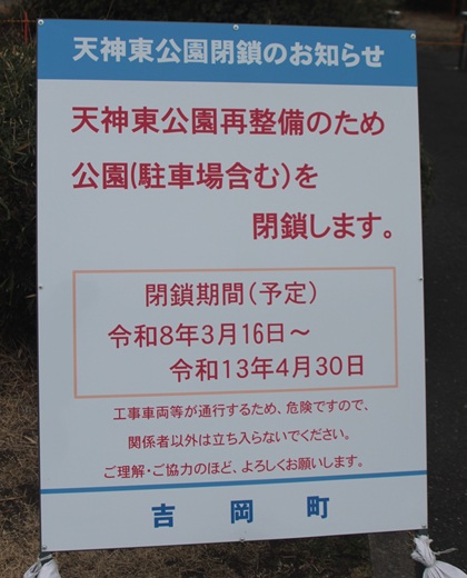 再整備工事が始まった天神東公園 投稿 2026/03/25更新 2026/03/25 吉岡町 利根川サイクリングロードを通って 道の駅よしおか温泉に。 その隣には、天神東公園があるのですが 公園再整備の工事が始まっていて 中には入れません。 令和13年4月いっぱいまでとなると 大掛かりな工事になるのかな。 バーベキュー施設などができるらしく 道の駅よしおか温泉と一体的な集客効果を 得るための魅力創出が目的だそうです。 近くには「道の駅まえばし赤城」 があるので、どうなるのかな。 カテゴリー吉岡町 タグ天神東公園 のりを