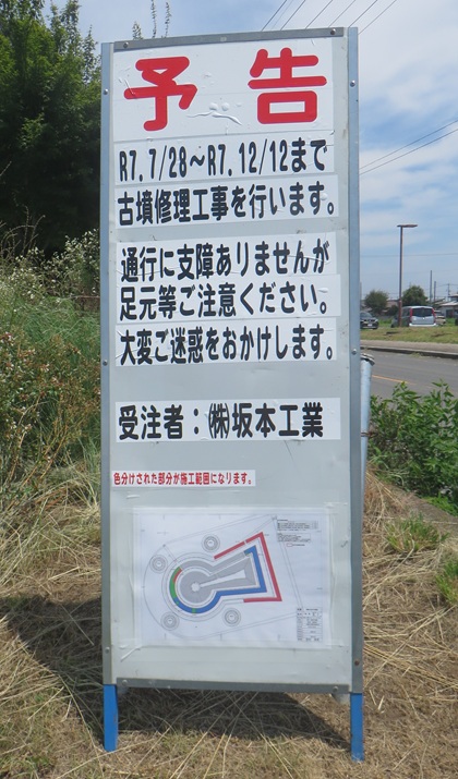 昨日のひまわり迷路のすぐ近くにある八幡塚古墳。その八幡塚古墳ですが保存補修工事が行われます。令和6年度から墳丘斜面、葺石の落下を防ぐための工事が行われているよう ...