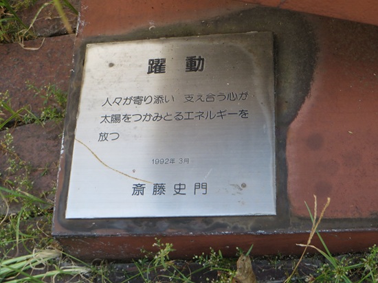 歩道にある銅像「ふるさとの風」