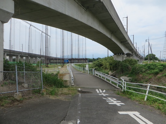 新幹線高架下の道を通って