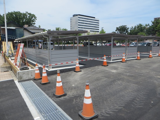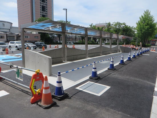 前橋市役所、整備中の構内駐車場 投稿 2025/06/23更新 2025/06/23 前橋市 前橋市は旧議会庁舎の跡地と 既存駐車場を合わせた敷地の整備中。 アスファルト再舗装も行われ 駐輪場も新設。 道路に面したバス停も新しく 反対側に行きまして、これも駐輪場? 群馬県庁をバックに もうほとんど出来上がってるように 見えるのですが、工事は7月いっぱいまで? カテゴリー前橋市 タグ前橋市役所 / 構内駐車場 のりを