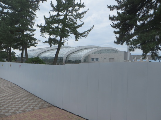 プール建て替え工事のそばには 投稿 2025/06/28更新 2025/06/28 前橋市 - 自転車 プールの建て替え工事が 始まっている敷島公園。 何本か松の木が切れれて 古いプールが、以前よりは よく見えるようになりましたが この高い塀があるため、 やっぱりよく見えないか。 手を伸ばせば、塀の上から撮れそうな気もしたのですが 中に人がいたのでやめました。 そして、以前は無かった このようなものが置かれてました。 工事の塀で通路が狭くなってるしね。 カテゴリー前橋市 - 自転車 タグ敷島公園 のりを