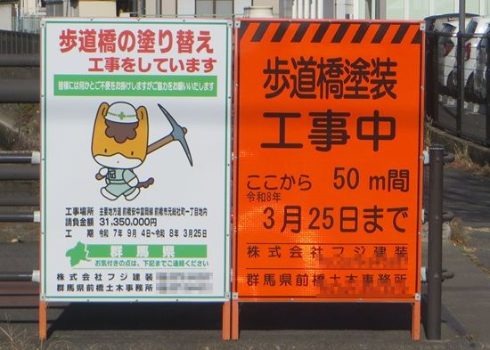 元総社歩道橋は塗装工事 投稿 2025/12/01更新 2025/12/01 前橋市 JA前橋市元総社支所の近くにある 元総社歩道橋は、工事のため ベニヤ板で覆われています。 小学校の頃からある歩道橋。 錆だらけだったので、てっきり 撤去工事かと思ったら塗装工事か。 まだ渡れるようなので、中へ このような状態 もう古いから撤去した方が 道路も広がり車も通りやすくなる と、思うのですが・・・。 カテゴリー前橋市 タグ元総社歩道橋 / 塗装工事 のりを