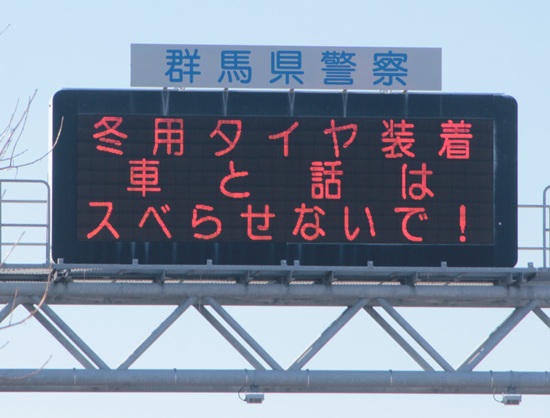 群馬県警察、冬の交通標語 投稿 2026/01/22更新 2026/01/22 前橋市 - 群馬県 高前バイパス、警察学校前にある 電光掲示版には、この時期ならではの 新しい交通標語が。 それにしても、寒いですね。 自転車で出かけるのが 億劫になってきました。 カテゴリー前橋市 - 群馬県 タグ交通標語 / 群馬県警察 のりを
