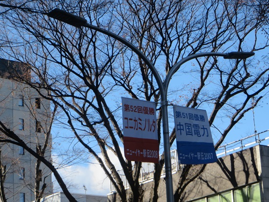 前橋駅前通りにもフラッグが2024/12/15スポーツ - 前橋市前橋駅前通り。ここの街路灯にもニューイヤー駅伝歴代優勝チーム名が書かれたフラッグが設置されています。今までも設置されていたのだろうか。今回初めて気づきました。記事を読む
