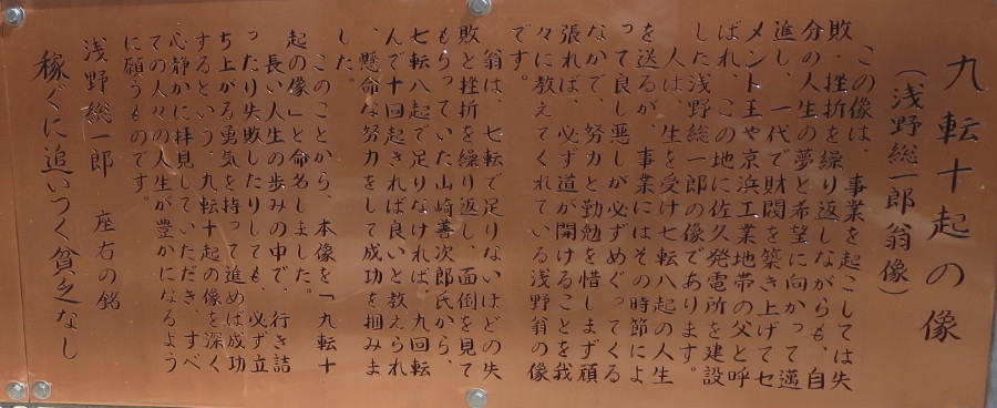 そこのふれあい公園には「九転十起の像」というものがあります。