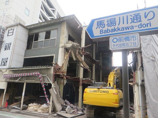 白銀屋は解体中 投稿 2025/07/18更新 2025/07/18 前橋市 馬場川通りにあった白銀屋は閉店し その建物の解体工事も進んでいました。 このあとは、どうなるのだろうか・・・。 カテゴリー前橋市 タグ白銀屋 / 馬場川通り のりを