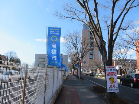 ニューイヤー駅伝が近づく群馬県庁周辺 投稿 2018/12/28更新 2018/12/28 イベント - スポーツ - 前橋市 - 群馬県 元日のニューイヤー駅伝が近づくにつれ 群馬県庁周辺も、準備が着々と進められています。 群馬県庁前。 今年のぐんまちゃんは、このデザイン。 県庁前通りには、早くも前橋市の看板が。 右側の街路樹の向こうの建物は、前橋市役所です。 そして、県庁32階の展望ロビー北側も 駅伝の中継ブースが出来上がってました。 ブース前には門松が。 カテゴリーイベント - スポーツ - 前橋市 - 群馬県 タグニューイヤー駅伝 / 群馬県庁 のりを
