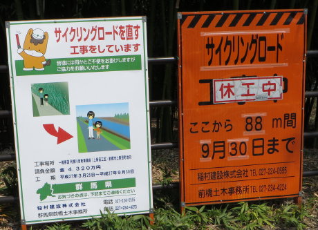 サイクリングロードの補修工事が始まるようです。2015/05/03前橋市 - 自転車利根川サイクリングロードは前橋市上新田町の雷電神社付近が長いこと通行止めで迂回をしていたのですがようやく補修工事が始まるようで先日通りがかったら、このような看板 ...記事を読む