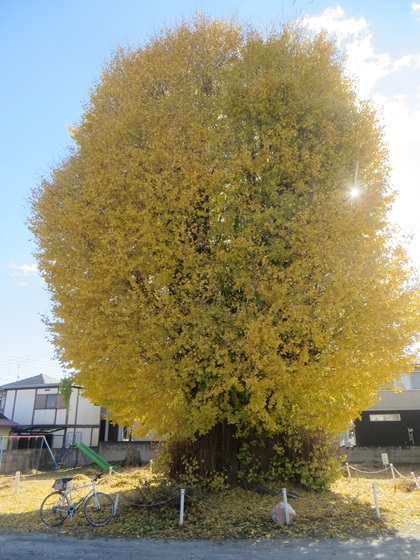 井野神社の大イチョウが黄葉し 投稿 2025/12/11更新 2025/12/11 植物 - 高崎市 井野神社の大イチョウ 前回来たときは、 まだ青々としていた葉が 黄色く色づいていました。 この樹の黄葉は遅いです。 それにしても立派なイチョウの樹 推定樹齢300年以上で 群馬県で3番目の大きさだそうです。 カテゴリー植物 - 高崎市 タグイチョウ / 井野神社 / 黄葉 のりを