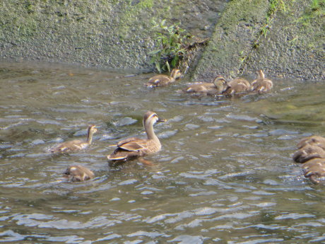 午玉川のカルガモ親子 投稿 2013/06/09更新 2015/07/22 動物 - 渋川市 実は昨日、渋川のスカイテルメへ またクラッシックカーを見に行ったのですが 時間を勘違いして見られませんでした(>_<) でも、スカイテルメに行く途中 何気に午玉川の川面を見ていると・・・ またカルガモ親子を発見しましたよ~。 現地で見時は、親ガモと雛が2羽だけかと思ったのですが 家に帰って写真を良く見てみると、草むらの中に たくさんの雛がいました(^^ゞ 他の場所にもいて こっちは親鳥と雛が3羽。 この川は、子育てには良い環境なのかな? カテゴリー動物 - 渋川市 タグカルガモ親子 / 午玉川 のりを