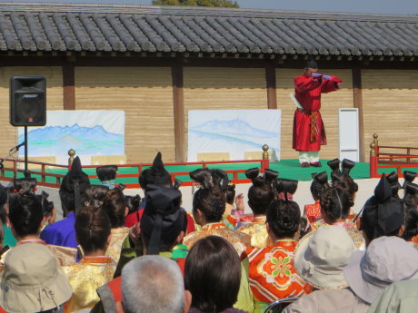 屋外での華やかな天平の衣装行列は