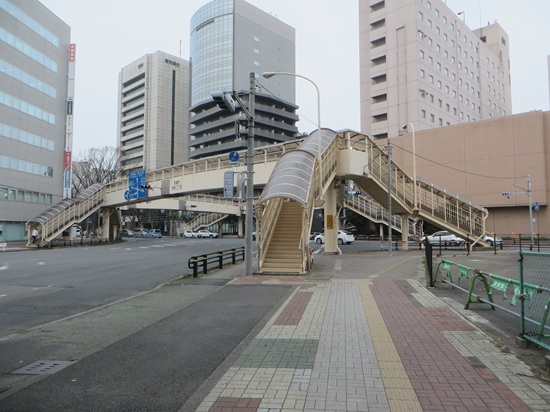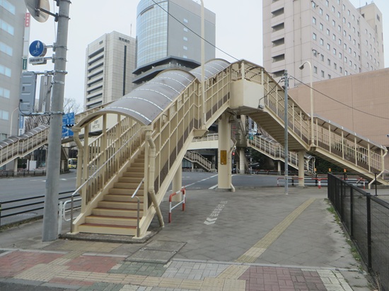 いわゆる「五差路」に架かる歩道橋の